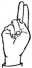 На ћирилици написано МАЈА ТЕОФИЛОВИЋ састоји се из 14 слова [?]. Исписано ћириличном једноручном азбуком за глувонеме: